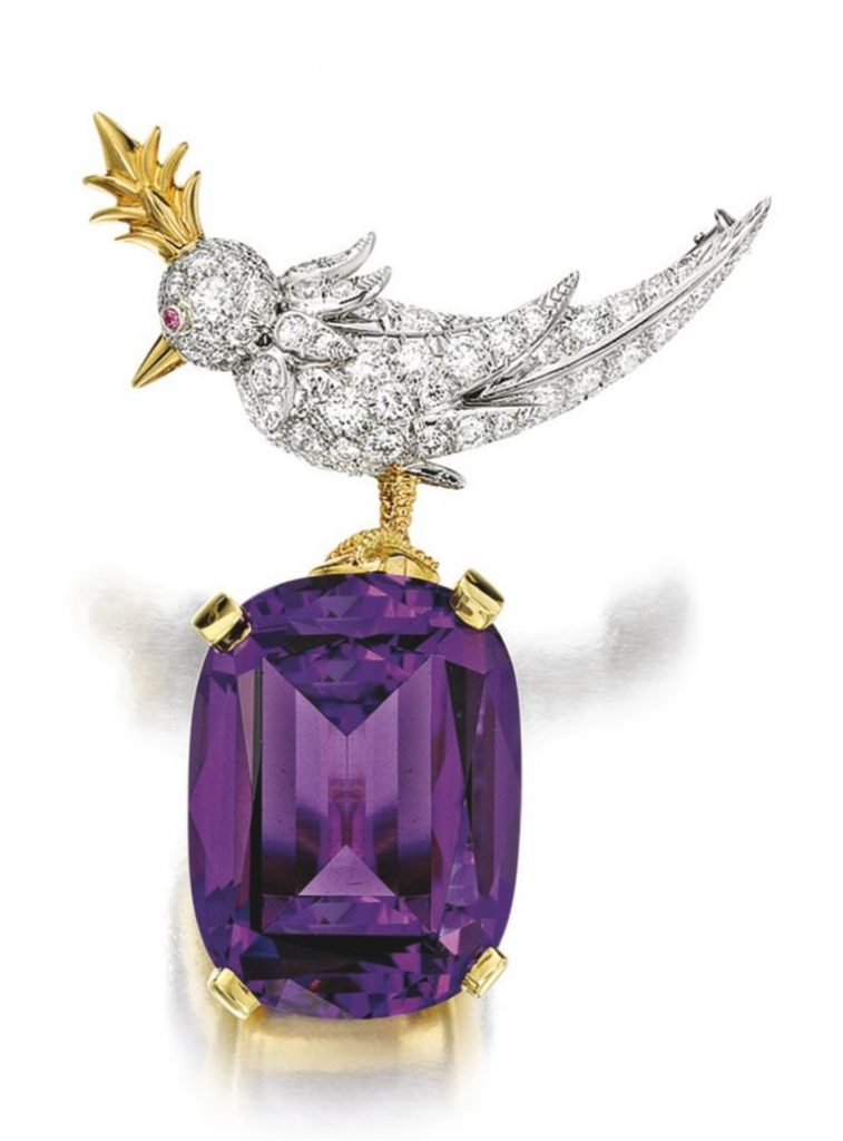 lot-1606-Amethyst-and-Diamond-Bird-on-a-Rock-Brooch-by-Schlumberger-for-Tiffany-Co.html Published March 30, 2017 at 767 × 1038 in PINK STAR DIAMOND TO LEAD SOTHEBY’S HONG KONG MAGNIFICENT JEWELS AND JADEITE SPRING SALE ON APRIL 4, 2017 Lot 1606 – Amethyst and Diamond ‘Bird on a Rock’ Brooch, by Schlumberger for Tiffany & Co. ← Previous Next →